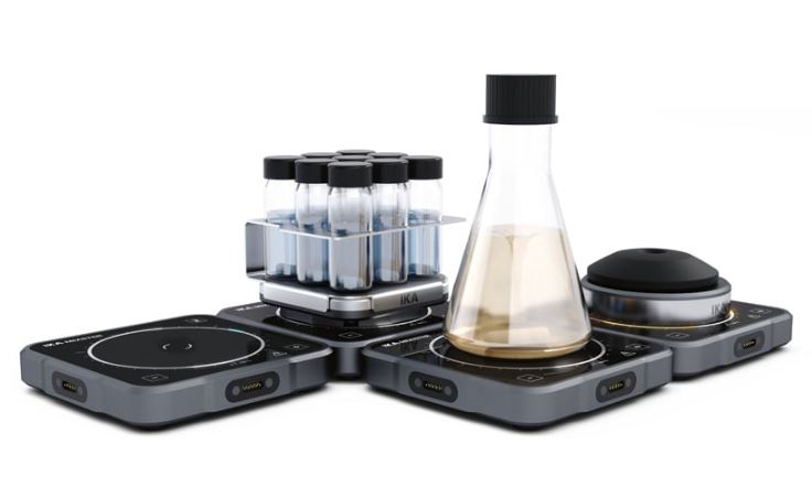 Prin conectarea unor unități suplimentare de amestecare IKA MIXSTER (disponibile ca accesorii, cod ID 0020112621), IKA MIXSTER poate fi extins la un agitator magnetic multi-poziție cu până la 30 de poziții de amestecare.* Pozițiile de amestecare pot fi controlate fie separat, fie simultan (principiul “urmeaza liderul”).