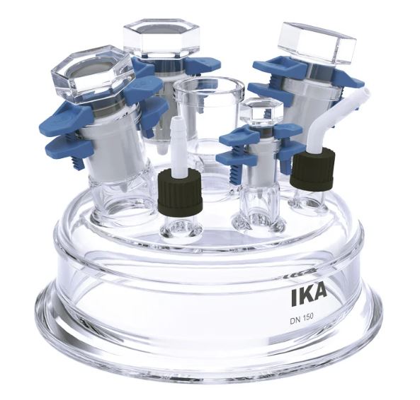 Capac reactor cu diverse deschideri (1 x NS 29/32 îmbinare centrală din sticlă, 2 x NS 29/32, 1 x NS 14/23) pentru adaptare flexibilă la aplicația dorită