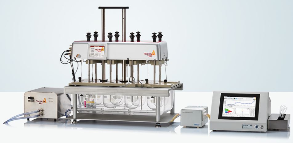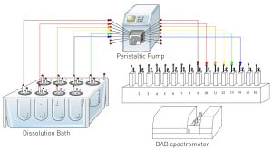 - Sisteme compuse din baia de dizolvare Pharma Test PTWS 620, spectrometru cu matrice de diode UV/VIS J&M TIDAS® L 570 DAD și pompă peristaltică IPC